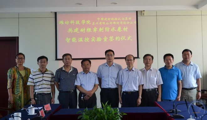| 中国建材检验认证集团苏州有限公司与山东潍坊科技学院签约共建耐根穿刺防水卷材智能温控实验室 |
