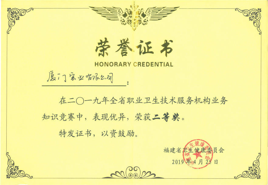 | CTC厦门宏业荣获福建省职业卫生技术服务机构 业务知识竞赛二等奖 |