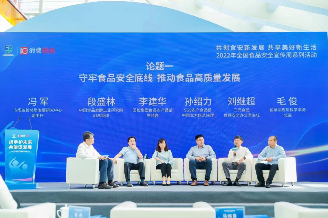 围绕大会主题“携手护未来,共治促发展”,市场监管局食品生产司司长马纯良、中国检科院副院长张峰等领导、专家发表了主旨演讲。来自政府部门、食品行业领军企业、权威技术服务机构、头部电商平台、大型商超等20余位专家及代表,围绕“守牢食品安全底线 推动食品高质量发展”“食品质量提升与营养健康‘童’行”“企业责任与食品行业绿色低碳、可持续发展”三大议题展开讨论,分享经验,探讨趋势。